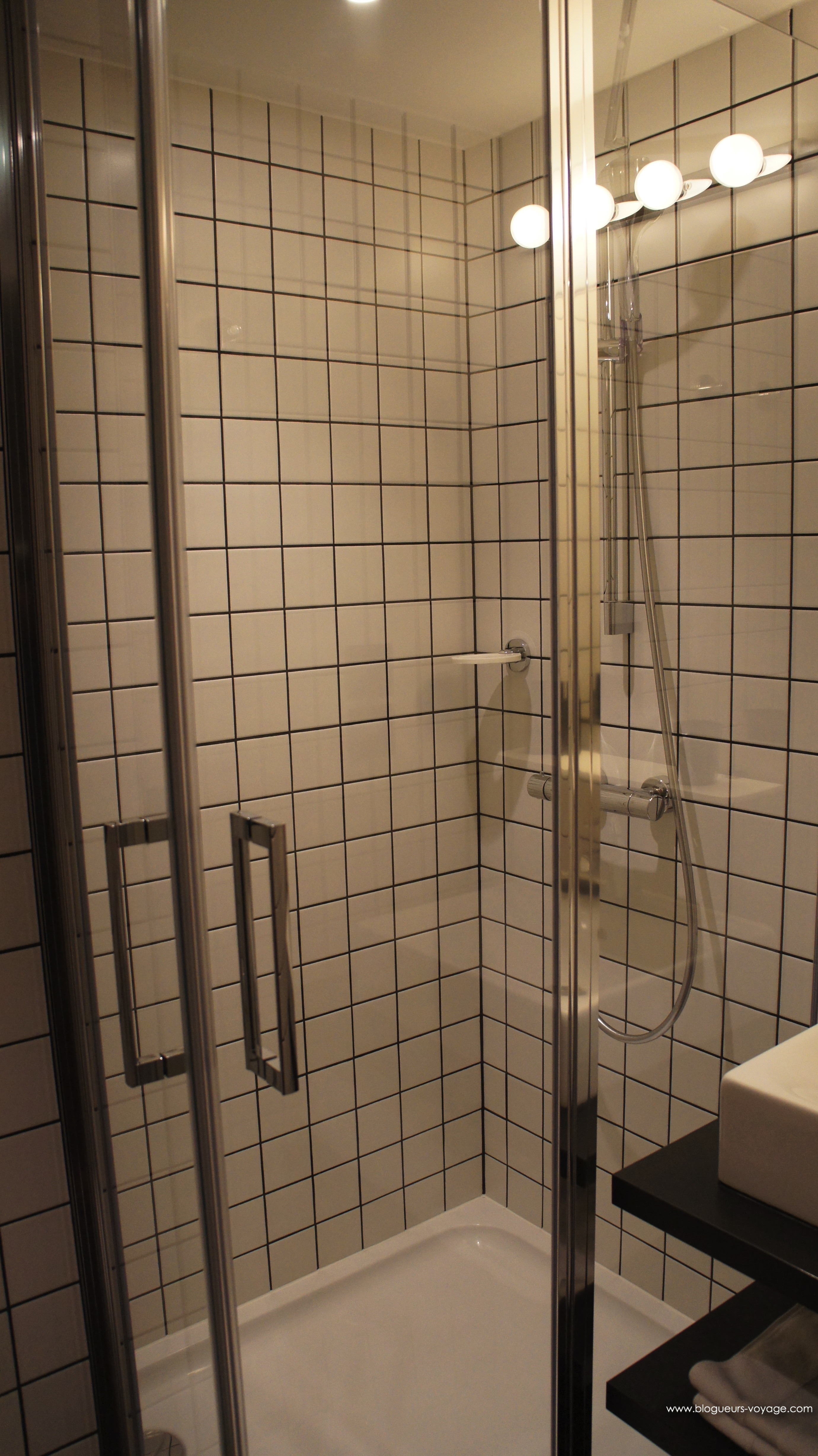 Après la remise des clefs nous nous sommes installés dans de belles chambres dont la déco et le choix des matériaux nous ont vite fait comprendre que nous étions aux portes de Chamonix, en pleine montagne certes, mais avec la fraîcheur d’un style contemporain qui nous a tout de suite plu. Avec plein de clins d’oeil comme la boîte à Kleenex en forme de Rubiks Cube ou même les motifs du tapis de sol de tout l’hôtel reprenant le mythique jeux vidéo ‘Space Invaders’. Les 25-45ans seront immédiatement sous le charme avec cette ambiance qui leur rappellera leur enfance / adolescence…