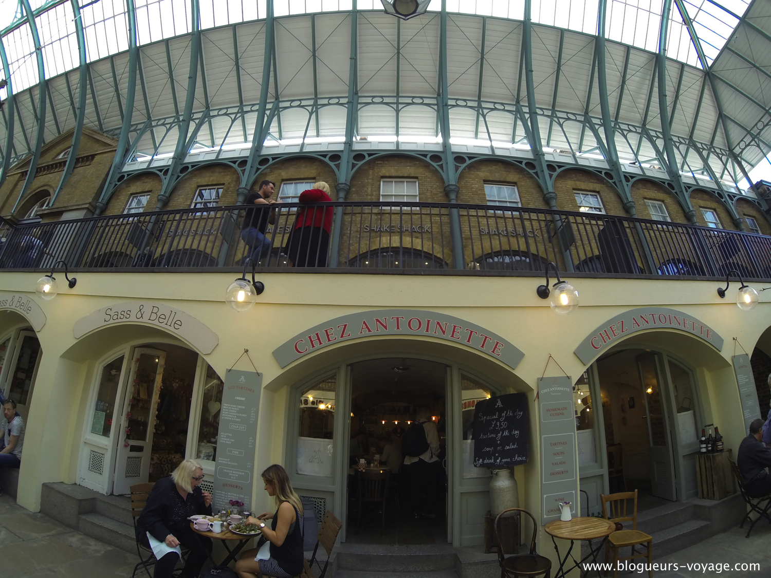 Malgré tout, le charme de la partie qui se trouve sous des verrières vaut le détour. Et nous y avons d’ailleurs trouvé un excellent petit restaurant qui ravira non seulement les papilles, mais également les amatrices de déco. Chez Antoinette est un restaurant tenu par une équipe de français très sympathiques qui nous ont dit eux même ne plus être des expats, mais des immigrés français en Angleterre 😉