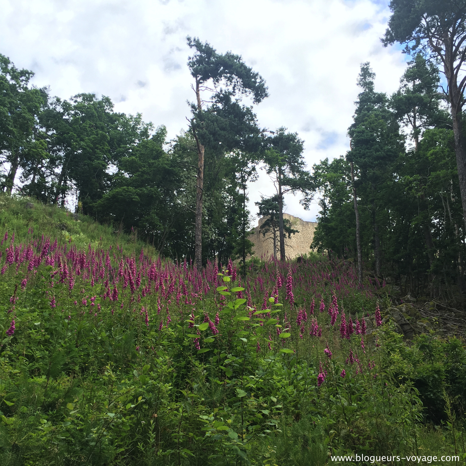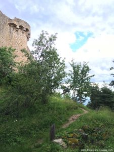Après un tel repas, rien de mieux qu’une petite balade digestive. En sortant du château, vous pourrez prendre un sentier qui vous permettra de découvrir la puissance défensive de l’édifice depuis le bas des remparts. Là, clairement on se dit que c’est dommage de n’avoir tenu que 10 minutes lors de l’unique siège du château quand on voit la hauteur et l’épaisseur des murs en pierre 😉 (La guide vous expliquera pourquoi que 10 minutes… 😉