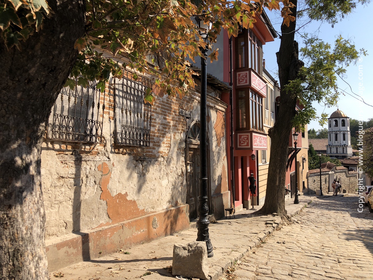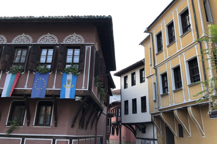 Là encore, il ne s’agit pas d’une visite mais d’une découverte. Prenez votre temps pour flâner dans ces superbes ruelles étroites bordées de maisons à encorbellements. (Encorbellement veut dire que plus le bâtiment monte, plus les étages sont décalés au-dessus de la rue ou du trottoir. (Dans notre région (Alsace), l’encorbellement était utilisé pour payer moins d’impôts au moyen âge car seule la surface au sol comptait… Malheureusement, nous n’avons pas réussi à savoir si c’était pour les mêmes raisons que les maisons dans les vieilles villes de Plovdiv et de Sozopol étaient construites de cette façon. Si vous avez la réponse, n’hésitez pas à nous contacter car la réponse nous intéresse !)
