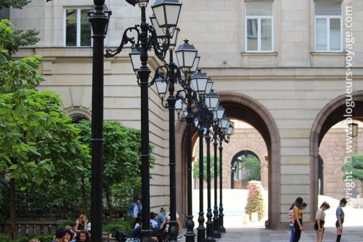 D’architecture soviétique, cet édifice fait face à une énorme place avec des fontaines en escaliers. (Le café Memento se trouve sur l’avant de ce bâtiment).